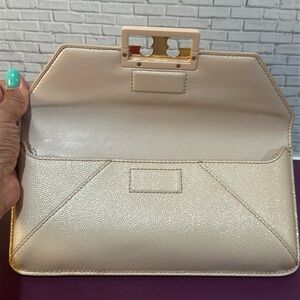 The clutch is suitable for carrying essentials like a phone, card case, and keys