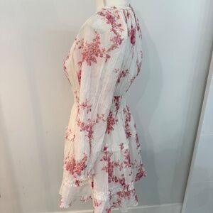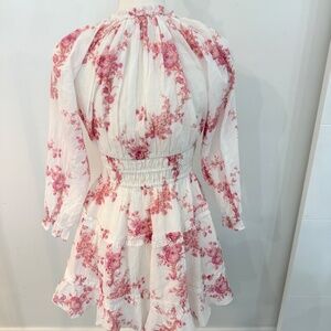 LoveShackFancy Mellni Floral Mini Dress Pink & White
