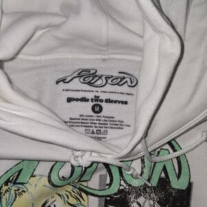 Stylish white hoodie with a vibrant Poison graphic. Features colorful artwork on the front.