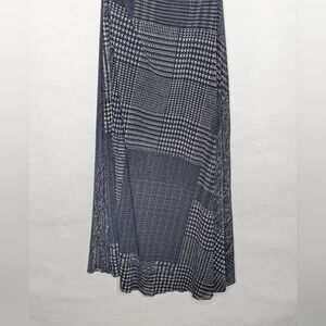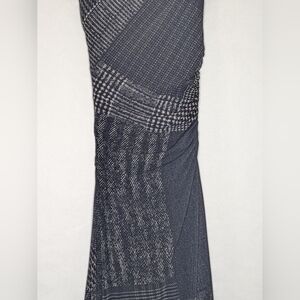 Fuzzi Plaid Print Maxi Dress SMALL Turtleneck Ruched Sleeveless Black Gray Weave