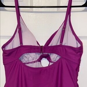 Stylish purple one-piece swimsuit with a front cutout design. Perfect for beach days. This is cupshe brand. I have washed this suit but have never worn. This has tummy control on the front of suit. Cut out top and back. Removable cups. Full booty coverage. Size medium.