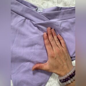 Pretty lilac (lavender color) booty scrunching on the back. Paid $44 + shipping new used maybe 1-2 times before I lost weight. Washed gentle cycle and air dried them. Just don’t use ever. No holes, no stains, no rips, no snags, no pilling. My loss your gain. Price is negotiable some please don’t lowball me as posh takes money in fees still 🥺. Thanks for shopping my closet😊💜!
