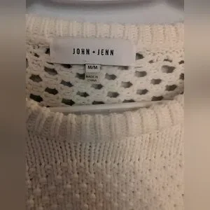 Discover the elegance of the John + Jenn White Crew Neck Sweater, crafted with a beautiful knit texture that adds a touch of sophistication to any outfit. This sweater, in a classic white hue, offers a timeless look that pairs effortlessly with various styles. Its crew neck design ensures a comfortable fit, making it a versatile addition to your wardrobe.