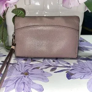 Add a pop of elegance to your everyday essentials with this Kate Spade New York wristlet wallet in a gorgeous muted blush pink pebble leather. Comes with a glittery rose gold wrist strap and a surprise pop of deep berry interior for a bold touch of glam. Perfect for on-the-go fashionistas — fits cards, cash, and small essentials.
