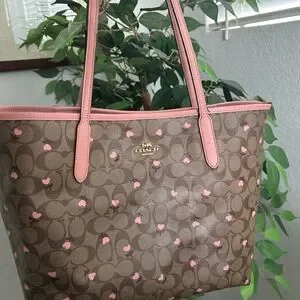 City Tote Bag In Signature Canvas With Heart Floral Print