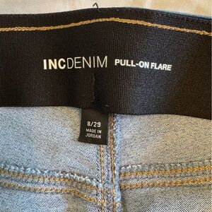 INC Denim Pull On Flare Jeans in size 8/29. They are super stretchy fabric and so cute on! Comes from an animal/smoke free home.