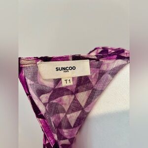 Chic mini dress with rouched skirt from French designer Suncoo. Looks amazing when accessorized with a thin belt and gold accents. Accidentally got 2 of the same dress and missed the return window.