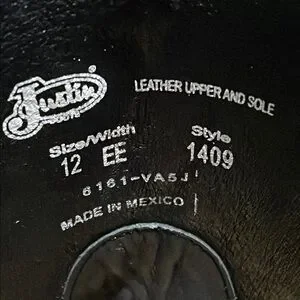 Justin Buck Black Cowhide Western Boots 12EE
