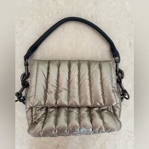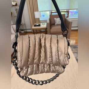Great neutral bag with an edge. Unique gorgeous color! Two inner zip pockets, one outer. Lightly used excellent condition.