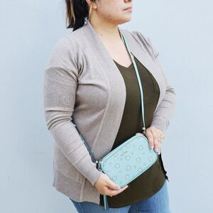 - Detachable long strap with 23" drop for shoulder or crossbody wear