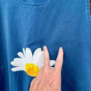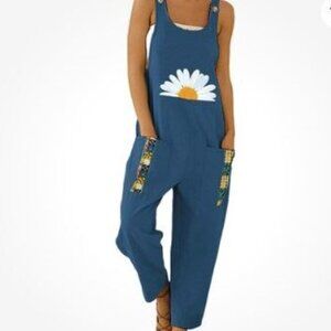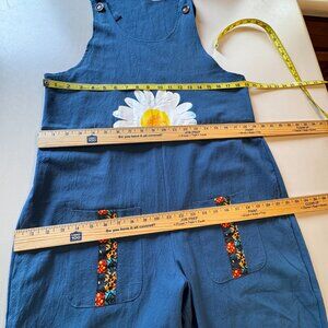(SOLD) Bib Overall Jumpsuit Teal Daisy Print Baggy Fit Cottagecore Boho Country