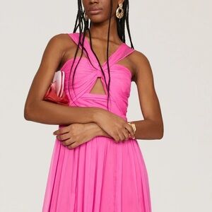This elegant pink sleeveless dress is perfect for any occasion. Its chic design and vibrant color make it a standout piece in your wardrobe. Has a full pull threads that can be shaved off no problem
