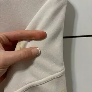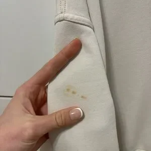 **2 large stains on sleeve & back of sweatshirt. 1 small spot**