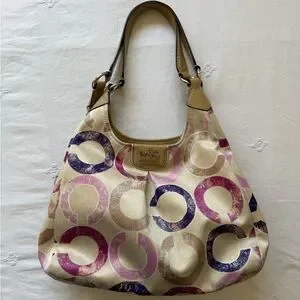 COACH Madison Signature Distressed OP Art Maggie Shoulder Bag Hobo RARE