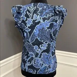 The Parker blouse showcases a captivating blue and white color palette, featuring elegant ruffled details and a chic wrap style. With its cap sleeves, this top offers a sophisticated and modern look, perfect for elevating any outfit. The intricate design and quality craftsmanship make it a standout piece in any wardrobe.