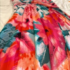 Step into elegance with the Vince Camuto Red and Blue Halter Maxi Sundress, perfect for a wedding guest or cocktail occasion. This sleeveless dress features a vibrant floral pattern with a halter neckline, offering a chic and sophisticated look. The flowing maxi length and sundress style ensure comfort and grace, making it an ideal choice for resort wear. Crafted with attention to detail, this dress embodies the essence of effortless style.