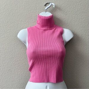 (tags- summer spring fall tops sleeveless pink hot vibrant colors outfits fashion zara h&m forever21 free people anthropologie cute ribbed turtleneck cropped vintage y2k 2000s )