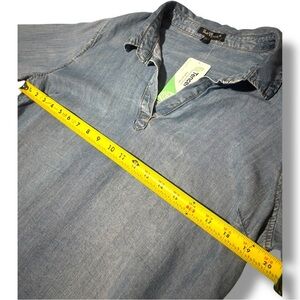 Velvet Heart NWT Blue Denim Cuffed Sleeve Collared Loose V-Neck Mini Shirt Dress