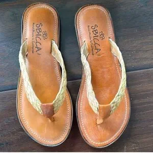 Sbicca Abalone leather flip flops sandals in natural color, size 8. New in box!