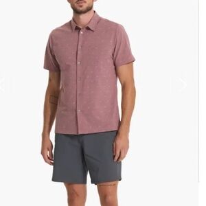 Elevate your casual wardrobe with this stylish red rust colored button-down shirt. Perfect for any relaxed occasion. Vuori, so very comfy. Fits just between a L and XL.