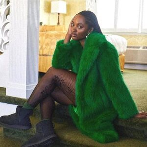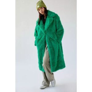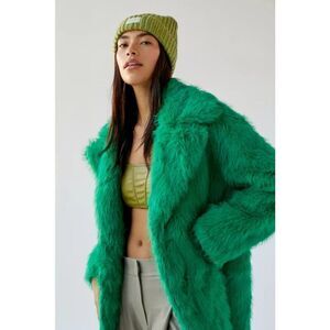 URBAN OUTFITTERS Maddie Faux Fur Overcoat in Green
