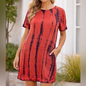 Oliviaceous NWT Women’s Tie Dye Salmon/Navy Shift Dress Boho Swing Size Medium
