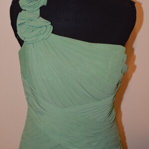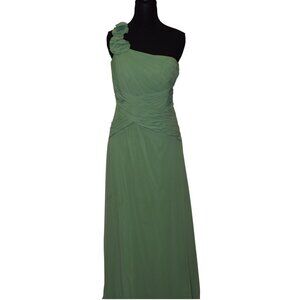 David's Bridal Moss Green One Shoulder Formal Chiffon Dress Bridesmaid Wedding 6