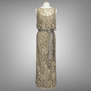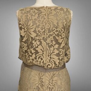 Tadashi Shoji Womens Dress 8 Beige Lace Overlay Blouson Gown Wedding Mother