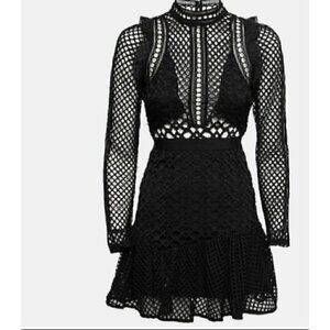 L'atiste Black Lace Lantern Crochet Long Sleeve Mini Dress S