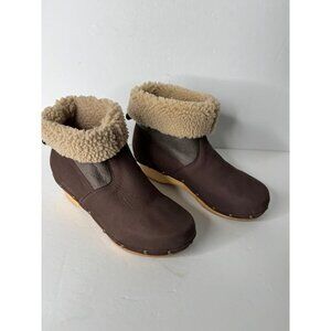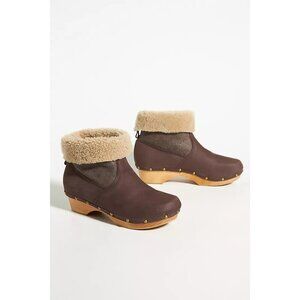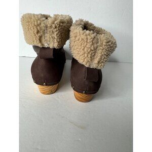 Penelope Chilvers Low Shearling Cuffed Clog Boots Leather Suede EU 36 US 6