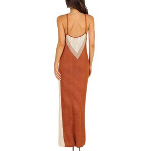 Petal and Pup Crochet Knit Halter Maxi Dress Tan Cream Rust