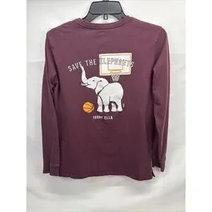 The Ivory Ella "Save the Elephants" long sleeve men's t-shirt in size small is a stylish and meaningful piece of clothing for animal enthusiasts. The shirt features a regular fit and comes in a rich maroon color, making it both comfortable and fashionable. The long sleeves add an extra touch of warmth and can be easily dressed up or down, perfect for casual everyday wear or outdoor activities.