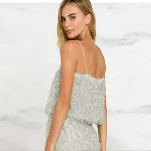 Our Fringed Mini Set oozes timeless style and is made with stretch fabric for a perfect fit. The lined skirt has a metal zipper at the side creating a sleek silhouette. It's the perfect piece to add a hint of sophistication to any wardrobe. Make a statement with this classic mini set. Get it now for an effortless style that you can wear with confidence.