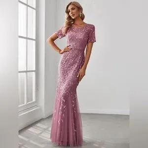 🆕 Floral Sequin Print Maxi Long Fishtail Formal Dresses With Half Sleeve