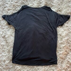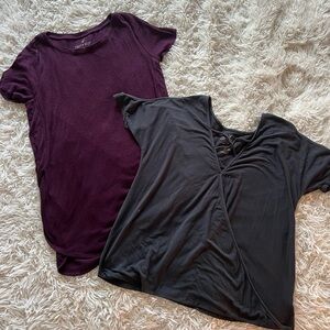 Burgundy shirt is like a tunic and the grey shirt is an open shoulder.