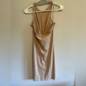 Alexander Wang Halter Cream Medium 100% Cotton Tan Mini Bodycon Dress