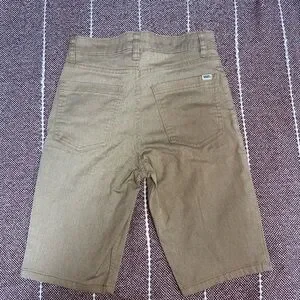 Embrace a laid-back vibe with these Vans tan jean shorts, featuring a trendy cut-off style hem. Crafted from durable denim, they offer a comfortable fit perfect for casual summer outings.