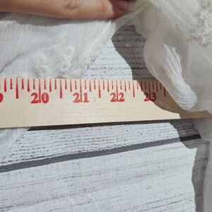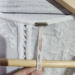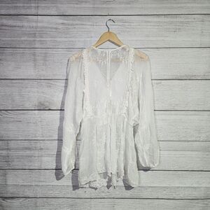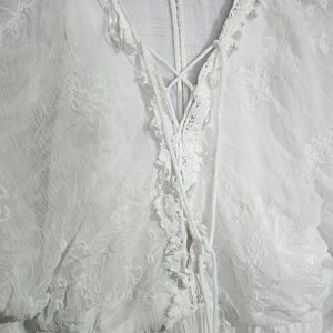 This elegant white lace top is perfect for any occasion. Its delicate design adds a touch of sophistication to your wardrobe. Beautiful detail.