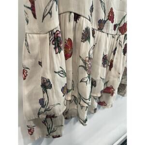 Pleione White Floral Blouse Women’s Medium Sheer V-Neck Long Sleeve Ruffles