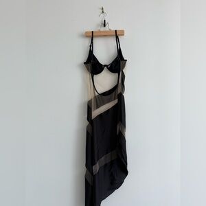 This elegant black and cream dress offers a sophisticated look for any occasion. Its sleek design and contrasting colors make it a standout piece in any wardrobe.