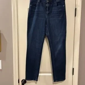 Experience timeless style with these J. Jill blue straight leg jeans. Crafted from durable denim, they offer a flattering fit and a deep indigo wash that adds a touch of sophistication to any outfit.