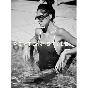 Peyton is a full piece with square neck and contrast cream piping detail.