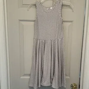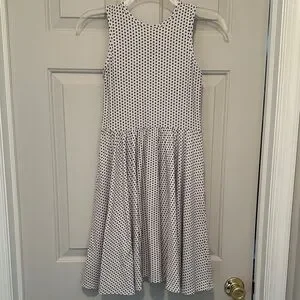 Step into casual sophistication with the Dot Dot Smile sundress, showcasing a creamy white and black star palette. This sleeveless dress features a scoop neckline and a breezy silhouette, perfect for warm weather outings. Its timeless design ensures comfort and style for any casual occasion. Full skirt for twirling. EUC.