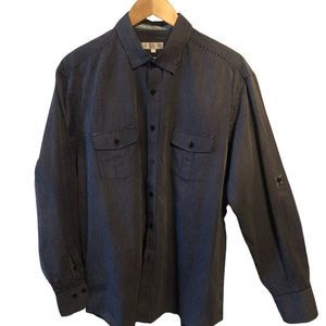 Bill Blass Pinstripe Shirt w/roll up sleeve button and tab, Size L