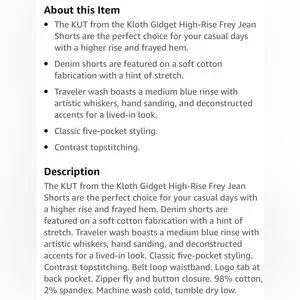 NWT KUT from the Kloth Gidget Mid Rise Fray Shorts, Size 6, Color Traveler, Excellent Condition