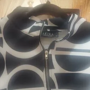 Elevate your outerwear collection with the AKIRA Bomber Jacket, featuring a striking black and white geometric design. This jacket combines a classic bomber silhouette with a modern twist, offering a sleek and sporty look. Its full-length sleeves and zipper front closure ensure both style and comfort for any casual occasion.