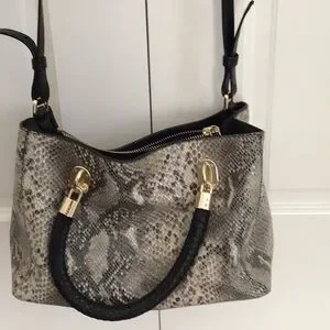 Cole Haan Black and Cream Shoulder Bag with Snakeskin Pattern