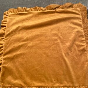 Enhance your home decor with these luxurious velvet ruffled pillows. The rich gold color adds a touch of elegance to any room. Perfect for your living room or bedroom.