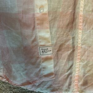 Charming pink plaid linen shirt by Frank & Eileen. Soft fabric with a classic button-down style. Ideal for casual wear.