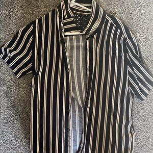 Experience the perfect blend of style and comfort with the Denim & Flower Casual Button Down Shirt. Featuring a striking black and white vertical striped pattern, this shirt is crafted from a soft cotton blend, ensuring a comfortable fit for any casual occasion. The bold stripes and classic button-down design make it a versatile addition to your wardrobe.